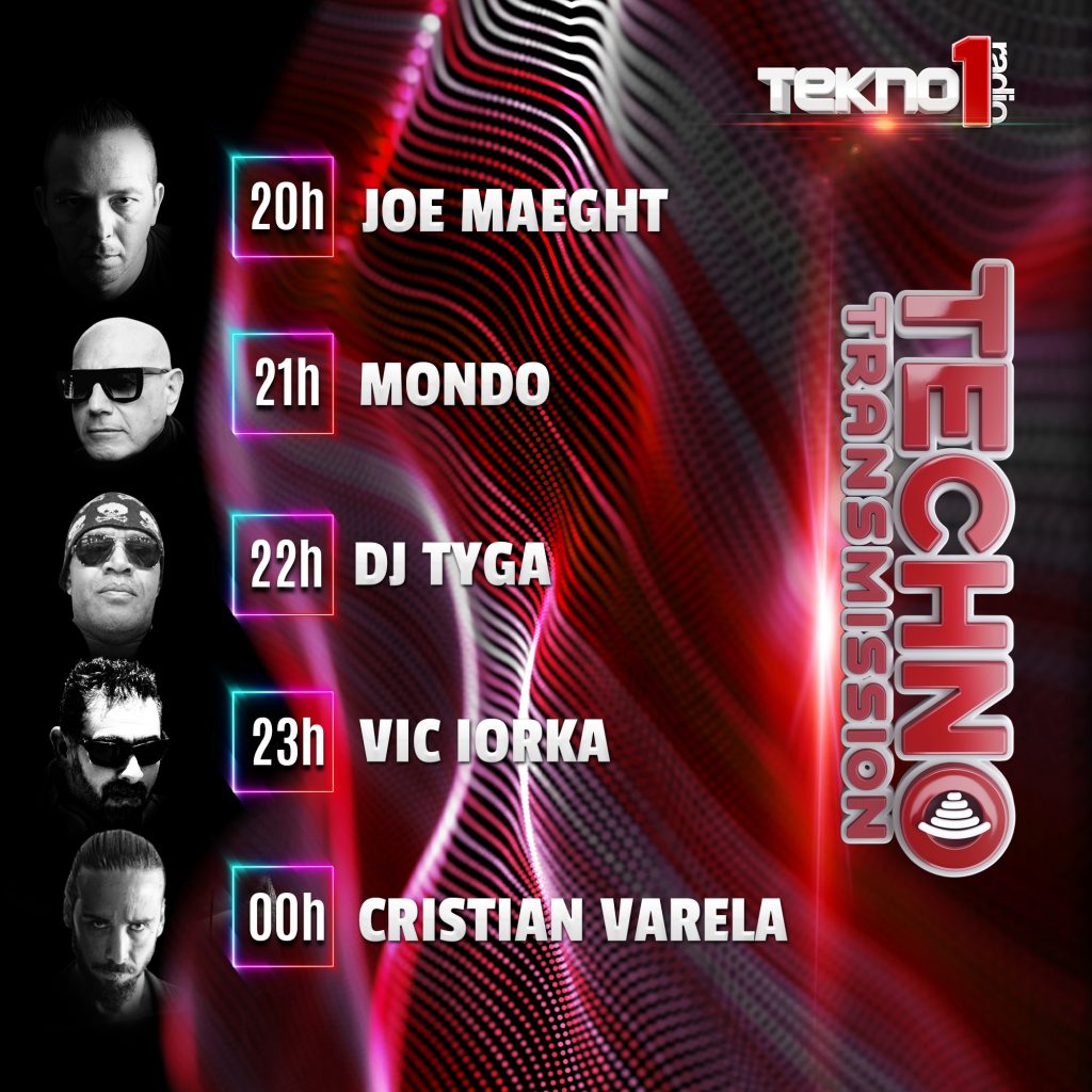 Techno Transmission est lâĂ©mission emblĂ©matique de Tekno1 Radio, un voyage sonore intense entiĂšrement dĂ©diĂ© Ă la techno. Chaque samedi soir, plonge dans cinq heures de rythmes puissants, de sonoritĂ©s sombres et de sĂ©lections pointues.